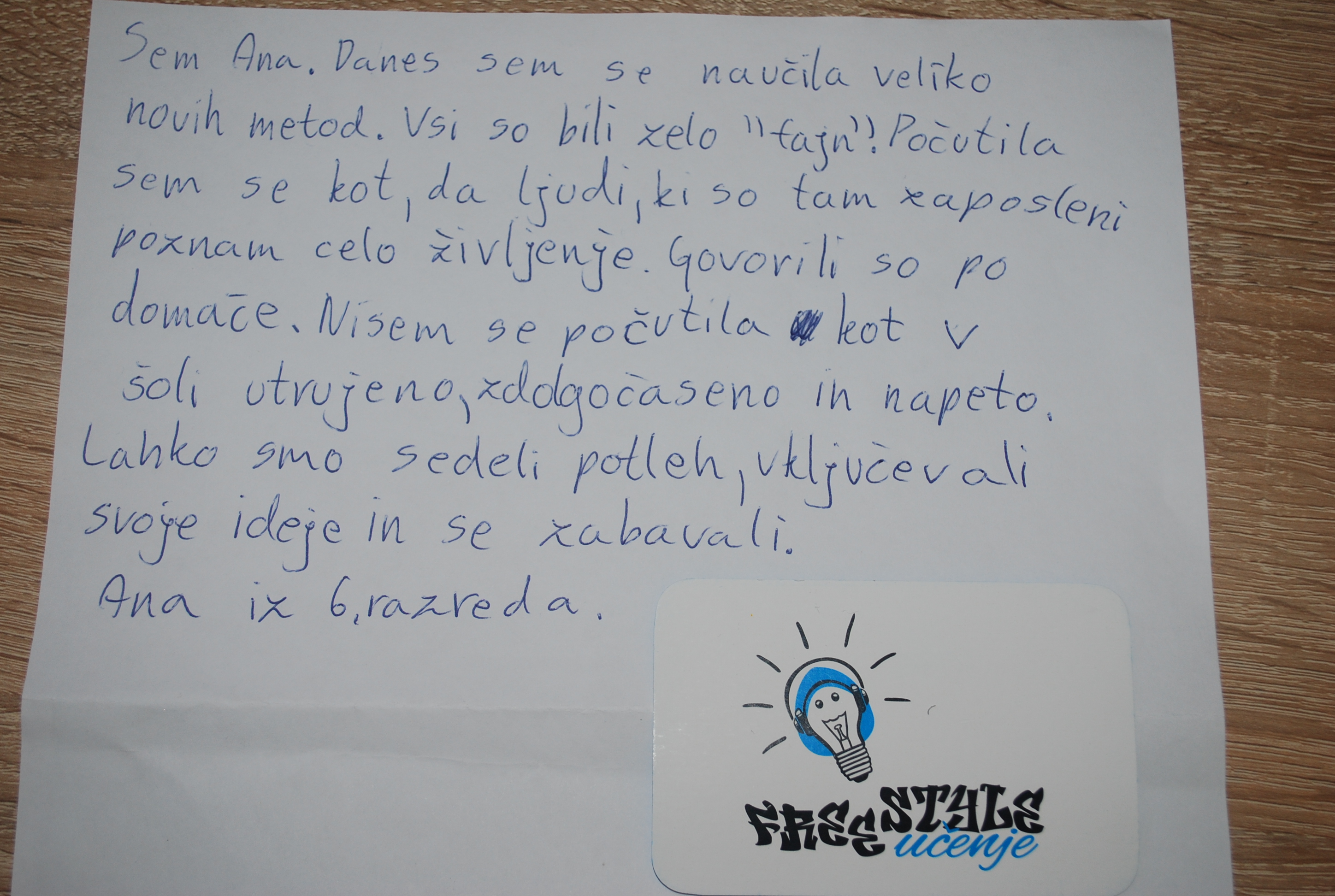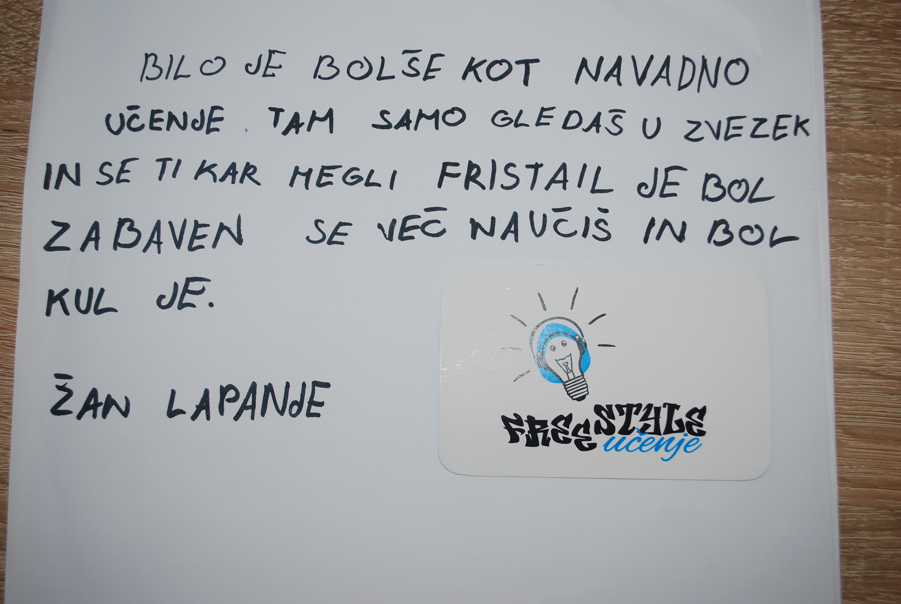Na številnih delavnicah Freestyle učenja po Sloveniji navdušujemo s praktičnimi primeri učne snovi, kako si jo zapomniti na zabaven način in zadovoljni starši tudi gibajo z nami in se učijo z veseljem. Ena najlepših izkušenj je, ko vidimo odrasle ponovno nasmejane in rečejo:” Zakaj teh metod nismo poznali že prej?”