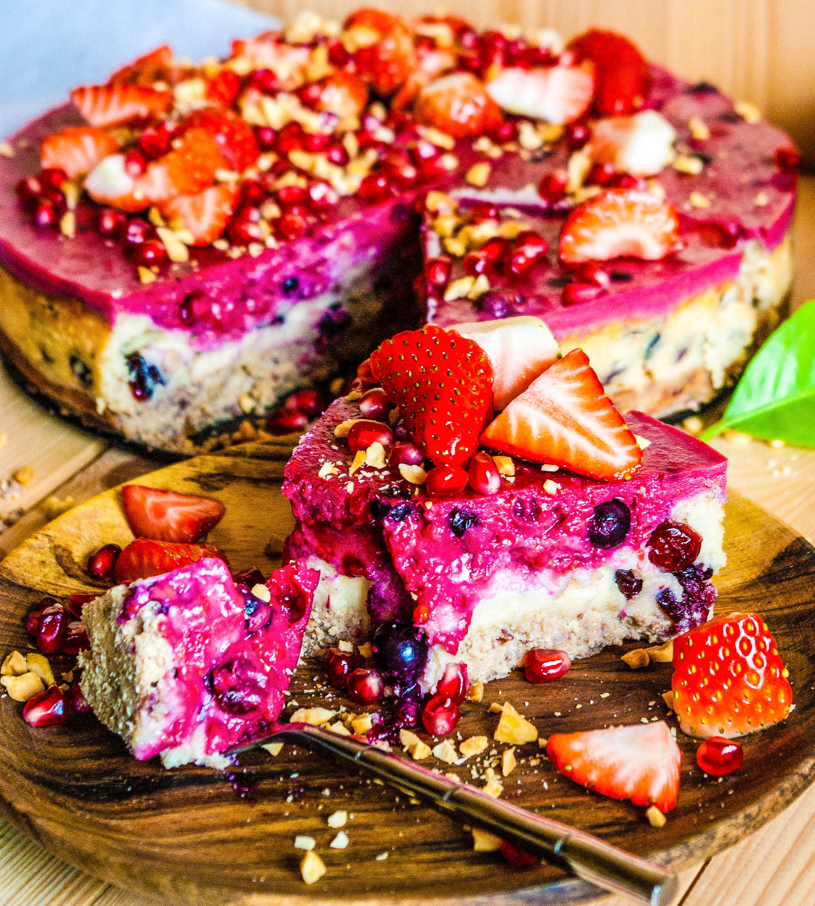 Medtem pripravimo kremo. V multipraktiku gladko premešamo indijske oreščke in kokosovo kremo. Masi nato z žlico primešamo brusnice in vse skupaj enakomerno nadevamo čez pečeno testo.