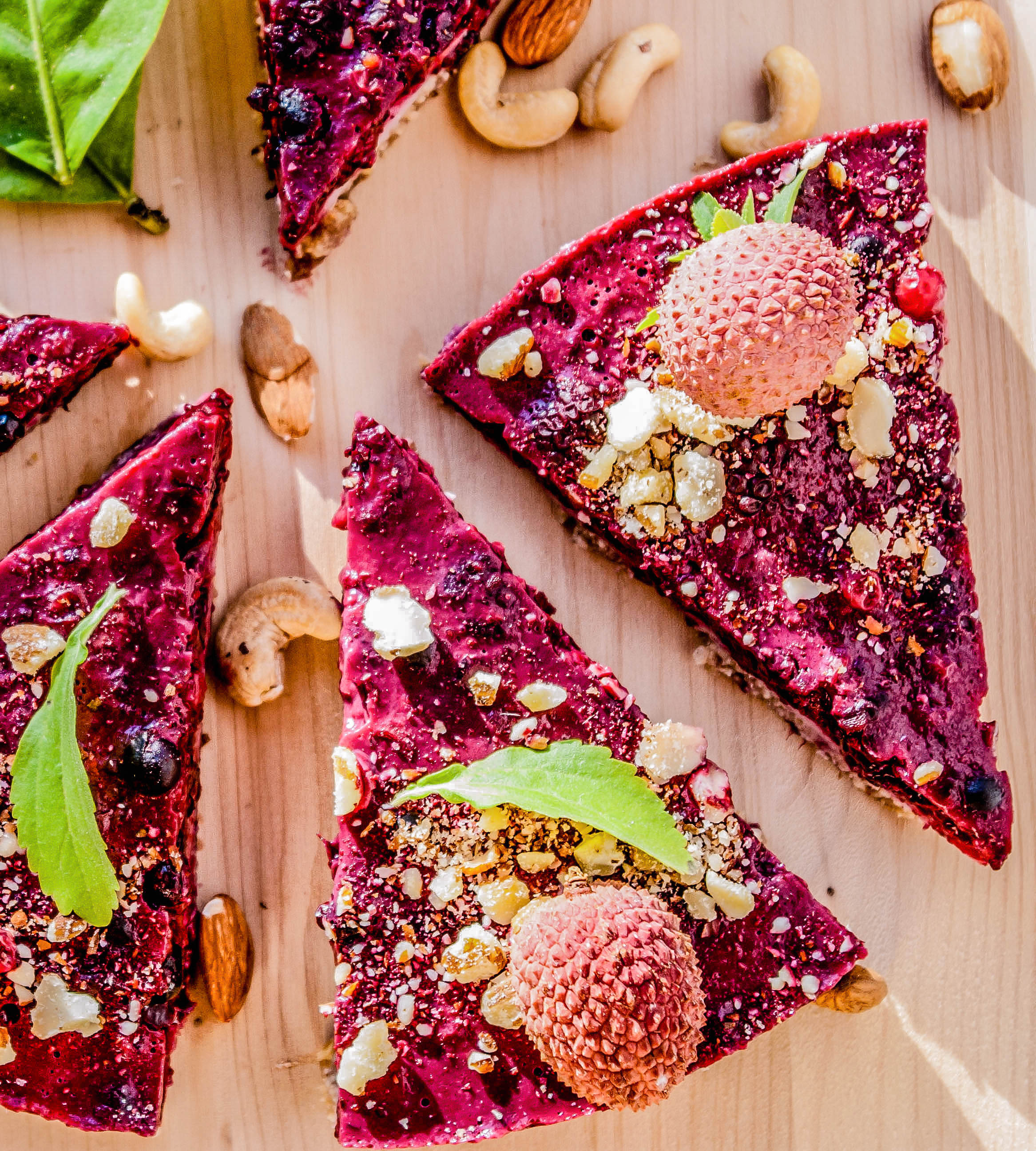 Za testo najprej v multipraktiku grobo zmeljemo mandlje in indijske oreščke ter zmes presujemo v posodo, v kateri bomo v drugem koraku združili vse sestavine za testo.